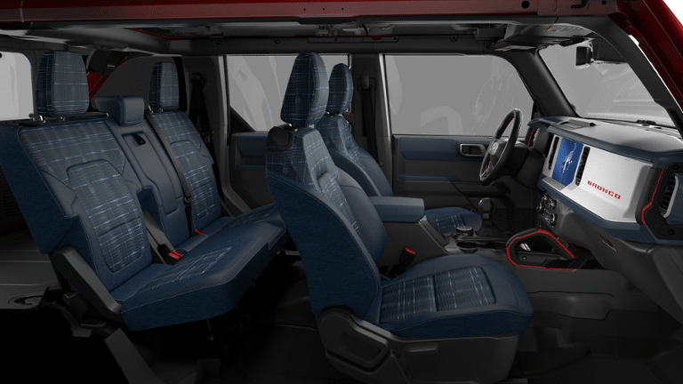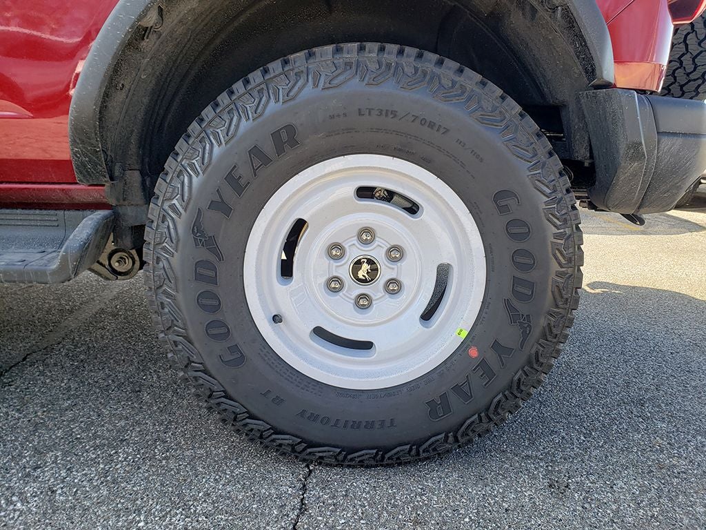 2026 Ford Bronco Heritage Edition Bronco Heritage Edition, 4D Sport Utility, 2.7L EcoBoost V6, 10-Speed Automatic, 4WD, Ruby Red Metallic Tinted Clearcoat, Navy Pier w/Plaid Cloth Front Heated Bucket Seats, 7 Speakers, AM/FM radio: SiriusXM with 360L, AM/FM Stereo, Auto High-beam Headlights, Automatic temperature control, Brake assist, Connected Navigation, Convertible HardTop, Delay-off headlights, Electronic Stability Control, Equipment Group 662A Mid Package, Exterior Parking Camera Rear, Ford Connectivity Package (1-Year Included), Front dual zone A/C, Front fog lights, Fully automatic headlights, Glass rear window, Heated door mirrors, Heated front seats, Heated steering wheel, Illuminated entry, Navigation system: Connected Navigation, Panic alarm, Passenger vanity mirror, Plaid Cloth Front Heated Bucket Seats, Power door mirrors, Rear window defroster, Rear window wiper, Remote keyless entry, Security system, SiriusXM with 360L (3-Year Plan), Speed control, Steering wheel mounted audio controls, SYNC 4, Tachometer, Telescoping steering wheel, Tilt steering wheel, Traction control, Trip computer, Variably intermittent wipers, Wheels: 17 Unique White. Price includes: $750 - Retail Customer Cash. Exp. 04/30/2026