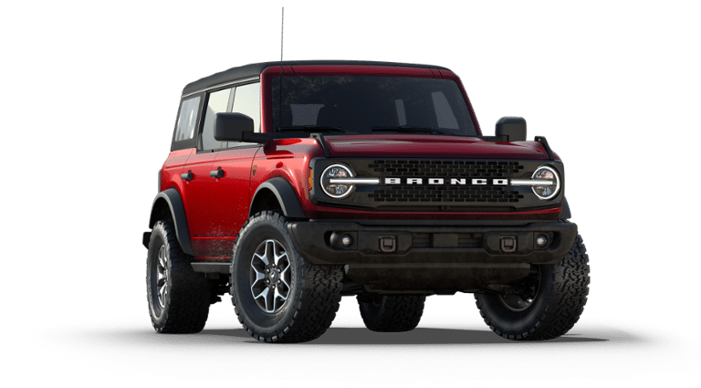 2025 Ford Bronco Badlands Bronco Badlands, 4D Sport Utility, 2.7L EcoBoost V6, 10-Speed Automatic, 4WD, Ruby Red Metallic Tinted Clearcoat, Black Onyx w/Leather-Trimmed/Vinyl Bucket Seats, 2-Door Intelligent Access w/Lock/Unlock, Air Conditioning, AM/FM radio: SiriusXM with 360L, Ambient Footwell Lighting, Auto High-beam Headlights, Auto-dimming Rear-View mirror, Black Appearance Package, Black Molded-In-Color Door Handles, Black Molded-In-Color Fender Flares, Black Molded-In-Color Sideview Mirror Caps, Black-Painted Molded-In-Color Grille, Brake assist, Compass, Connected Navigation, Delay-off headlights, Dr & Pass Illuminated Sliding Visor Vanity Mirrors, Dual Smart Charging USB Ports, Dual-Zone Electronic Automatic Temperature Control, Electronic Stability Control, Equipment Group 332A Mid Package, Exterior Parking Camera Rear, Front Bucket Seats, Front fog lights, Front reading lights, Front Row Heated Seats, Fully automatic headlights, Heated door mirrors, Heated steering wheel, Illuminated entry, Leather Shift Knob, Outside temperature display, Overhead console, Panic alarm, Power Outlet - Back Side of Center Floor Console, Rear Parking Sensors, Rear-View Camera, Remote keyless entry, Security system, Shadow Black Painted Hard Top, Speed control, Steering wheel mounted audio controls, SYNC 4, Tachometer, Telescoping steering wheel, Tilt steering wheel, Traction control, Trip computer, Voltmeter, Wheels: 17 Carbonized Gray-Painted Aluminum. Price includes: $1500 - Bonus Customer Cash. Exp. 02/02/2026