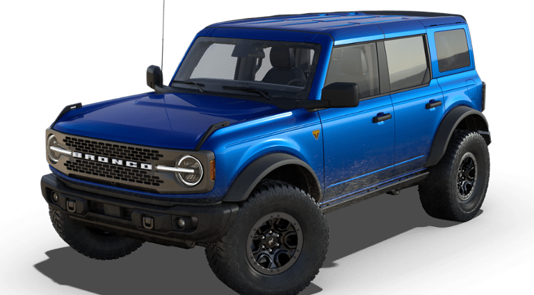 2025 Ford Bronco Badlands Bronco Badlands, 4D Sport Utility, 2.7L EcoBoost V6, 10-Speed Automatic, 4WD, Velocity Blue Metallic, 2-Door Intelligent Access w/Lock/Unlock, 7 Speakers, Air Conditioning, AM/FM radio: SiriusXM with 360L, Ambient Footwell Lighting, Auto High-beam Headlights, Auto-dimming Rear-View mirror, Brake assist, Compass, Connected Navigation, Delay-off headlights, Dr & Pass Illuminated Sliding Visor Vanity Mirrors, Dual Smart Charging USB Ports, Dual-Zone Electronic Automatic Temperature Control, Electronic Stability Control, Equipment Group 332A Mid Package, Exterior Parking Camera Rear, Front fog lights, Front reading lights, Front Row Heated Seats, Fully automatic headlights, Heated door mirrors, Heated front seats, Heated steering wheel, Illuminated entry, Internet access capable: FordPass Connect, Panic alarm, Power door mirrors, Power Outlet - Back Side of Center Floor Console, Rear Parking Sensors, Remote keyless entry, Security system, SiriusXM w/360L, Speed control, Split folding rear seat, Steering wheel mounted audio controls, SYNC 4, Tachometer, Telescoping steering wheel, Tilt steering wheel, Trip computer, Voltmeter. Price includes: $1500 - Bonus Customer Cash. Exp. 03/02/2026