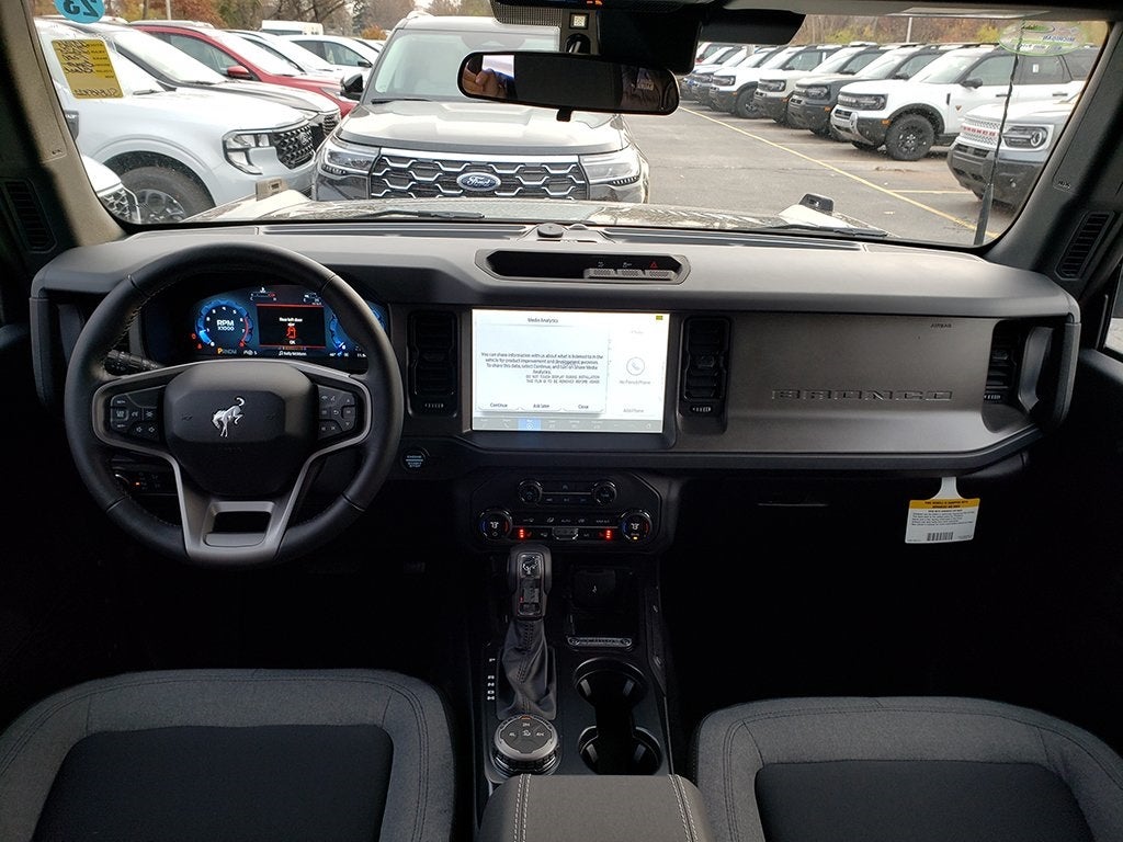 2025 Ford Bronco Big Bend Bronco Big Bend, 4D Sport Utility, 2.3L EcoBoost I-4, 4WD, Shadow Black, Dark Space Gray w/Black Onyx w/Cloth Bucket Seats, 2-Door Intelligent Access w/Lock/Unlock, 7 Speakers, Air Conditioning, AM/FM radio: SiriusXM with 360L, Ambient Footwell Lighting, Auto High-beam Headlights, Brake assist, Connected Navigation, Delay-off headlights, Dr & Pass Illuminated Sliding Visor Vanity Mirrors, Dual Smart Charging USB Ports, Dual-Zone Electronic Automatic Temperature Control, Electronic Stability Control, Equipment Group 222A Mid Package, Exterior Parking Camera Rear, Front Row Heated Seats, Fully automatic headlights, Heated door mirrors, Illuminated entry, Leather Shift Knob, Panic alarm, Power door mirrors, Power Outlet - Back Side of Center Floor Console, Rear Parking Sensors, Remote keyless entry, Security system, Speed control, Split folding rear seat, Steering wheel mounted audio controls, SYNC 4, Tachometer, Telescoping steering wheel, Tilt steering wheel, Traction control, Trip computer, Wheels: 17 Carbonized Gray-Painted Aluminum. Price includes: $1500 - Bonus Customer Cash. Exp. 02/02/2026