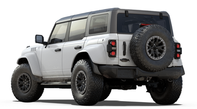 2025 Ford Bronco Raptor Bronco Raptor, 4D Sport Utility, 3.0L EcoBoost V6, 10-Speed Automatic, 4WD, Oxford White, 12 Speakers, AM/FM radio: SiriusXM with 360L, Auto High-beam Headlights, Auto-dimming Rear-View mirror, Automatic temperature control, Brake assist, Compass, Connected Navigation, Convertible HardTop, Delay-off headlights, Electronic Stability Control, Equipment Group 374A Lux Package, Exterior Parking Camera Rear, Front dual zone A/C, Front fog lights, Front reading lights, Fully automatic headlights, Garage door transmitter, Glass rear window, Gloss Black Sideview Mirror Skull Caps, Hard Top Sound Deadening Headliner, Heated door mirrors, Heated front seats, Heated steering wheel, Illuminated entry, Interior Carbon Fiber Pack, Internet access capable: FordPass Connect, Leather Shift Knob, Navigation system: Connected Navigation, Outside temperature display, Panic alarm, Radio: B&O Sound System by Bang & Olufsen, Raptor Black Appearance Package, Rear window defroster, Rear window wiper, Remote keyless entry, Security system, SiriusXM w/360L, Speed control, Steering wheel mounted audio controls, SYNC 4, Tachometer, Telescoping steering wheel, Tilt steering wheel, Trip computer, Variably intermittent wipers, Voltmeter, Wheels: 17 Dark Carbonized Gray Alloy Painted.