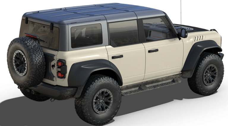 2025 Ford Bronco Raptor Bronco Raptor, 4D Sport Utility, 3.0L EcoBoost V6, 10-Speed Automatic, 4WD, Desert Sand, Black Onyx w/Leather-Trimmed/Vinyl Bucket Seats or Leather-Trimmed/Vinyl Bucket Seats w/Blue/Black, 12 Speakers, Air Conditioning, AM/FM radio: SiriusXM with 360L, Auto High-beam Headlights, Auto-dimming Rear-View mirror, Automatic temperature control, Brake assist, Compass, Connected Navigation, Convertible HardTop, Convertible roof lining, Delay-off headlights, Electronic Stability Control, Equipment Group 374A Lux Package, Exterior Parking Camera Rear, Front dual zone A/C, Front fog lights, Fully automatic headlights, Glass rear window, Gloss Black Sideview Mirror Skull Caps, Heated door mirrors, Heated front seats, Heated steering wheel, Illuminated entry, Interior Carbon Fiber Pack, Leather Shift Knob, Navigation system: Connected Navigation, Outside temperature display, Panic alarm, Radio: B&O Sound System by Bang & Olufsen, Raptor Black Appearance Package, Rear seat center armrest, Rear window defroster, Rear window wiper, Remote keyless entry, Security system, SiriusXM w/360L, Speed control, Steering wheel mounted audio controls, SYNC 4, Tachometer, Telescoping steering wheel, Tilt steering wheel, Traction control, Trip computer, Variably intermittent wipers, Voltmeter, Wheels: 17 Dark Carbonized Gray Alloy Painted.