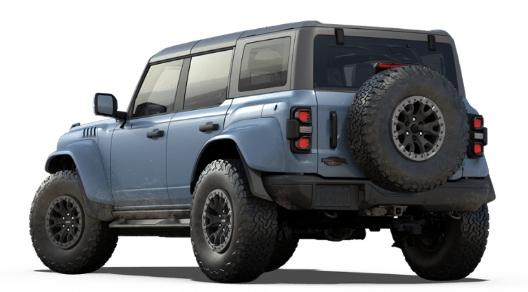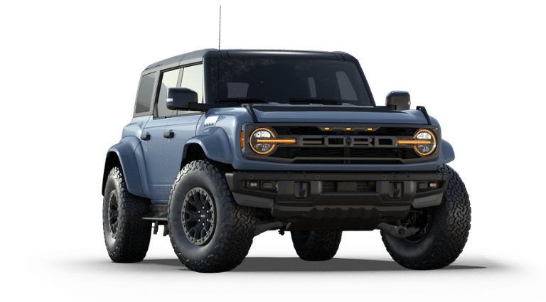 2025 Ford Bronco Raptor Bronco Raptor, 4D Sport Utility, 3.0L EcoBoost V6, 10-Speed Automatic, 4WD, Azure Gray Metallic, 12 Speakers, AM/FM radio: SiriusXM with 360L, Auto High-beam Headlights, Auto-dimming Rear-View mirror, Automatic temperature control, Brake assist, Compass, Connected Navigation, Convertible HardTop, Delay-off headlights, Electronic Stability Control, Equipment Group 374A Lux Package, Exterior Parking Camera Rear, Front dual zone A/C, Front fog lights, Fully automatic headlights, Glass rear window, Gloss Black Sideview Mirror Skull Caps, Hard Top Sound Deadening Headliner, Heated door mirrors, Heated front seats, Heated steering wheel, Illuminated entry, Interior Carbon Fiber Pack, Internet access capable: FordPass Connect, Leather Shift Knob, Low tire pressure warning, Navigation system: Connected Navigation, Panic alarm, Radio: B&O Sound System by Bang & Olufsen, Raptor Black Appearance Package, Rear window defroster, Rear window wiper, Remote keyless entry, Security system, SiriusXM w/360L, Speed control, Steering wheel mounted audio controls, SYNC 4, Tachometer, Telescoping steering wheel, Tilt steering wheel, Trip computer, Voltmeter, Wheels: 17 Dark Carbonized Gray Alloy Painted.