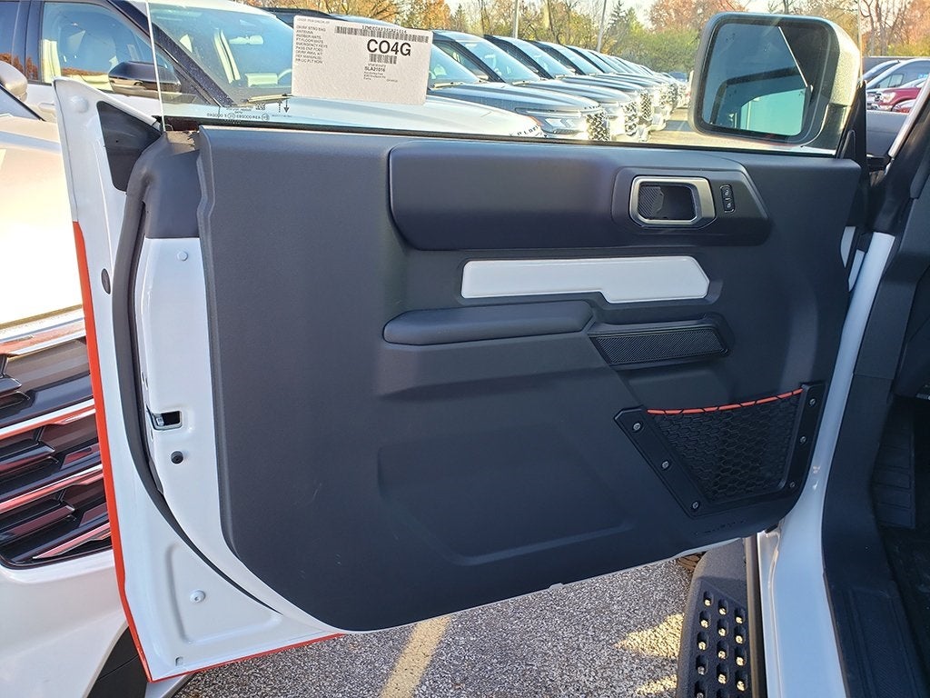 2025 Ford Bronco Stroppe Edition Bronco Stroppe Edition, 2D Sport Utility, 2.7L EcoBoost V6, 10-Speed Automatic, 4WD, Oxford White, Black Onyx w/Unique Vinyl Bucket Seats, 12 Speakers, Alloy wheels, AM/FM radio: SiriusXM with 360L, Auto High-beam Headlights, Auto-dimming Rear-View mirror, Automatic temperature control, Brake assist, Compass, Connected Navigation, Convertible HardTop, Convertible roof lining, Delay-off headlights, Electronic Stability Control, Equipment Group 564A Lux Package, Exterior Parking Camera Rear, Front dual zone A/C, Fully automatic headlights, Glass rear window, Heated door mirrors, Heated front seats, Heated steering wheel, Illuminated entry, Leather Shift Knob, Navigation system: Connected Navigation, Outside temperature display, Panic alarm, Power door mirrors, Radio: B&O Sound System by Bang & Olufsen, Rear window defroster, Rear window wiper, Remote keyless entry, Security system, SiriusXM w/360L, Speed control, Steering wheel mounted audio controls, SYNC 4, Tachometer, Telescoping steering wheel, Tilt steering wheel, Traction control, Trip computer, Unique Vinyl Bucket Seats, Variably intermittent wipers, Voltmeter, Wheels: 17 Unique Matte Black-Painted Alloy.