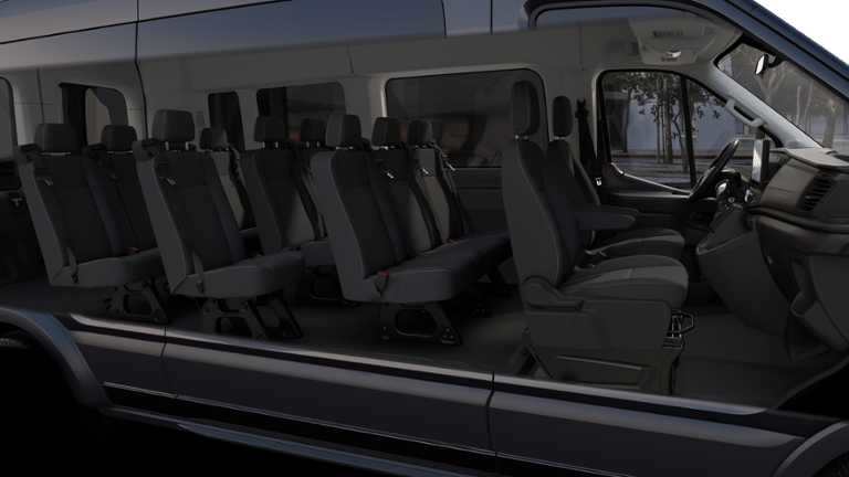 2025 Ford Transit-350 XL Passenger Van, EcoBoost 3.5L V6 GTDi DOHC 24V Twin Turbocharged, 10-Speed Automatic with Overdrive, RWD, Black Metallic, Gray Cloth, 15-Passenger Seats, 3.73 Axle Ratio, 360-Degree Camera w/Split View, 3rd row seats: split-bench, 4-Wheel Disc Brakes, 4th-Row Bench Seat, 8 Speakers, ABS brakes, Air Conditioning, Auto High-beam Headlights, BLIS Blind Spot Information System, Brake assist, Cloth Front Bucket Seats, Dark Palazzo Gray Cloth Bucket Seats, Delay-off headlights, Driver door bin, Driver vanity mirror, Driver's Seat Mounted Armrest, Dual AGM Batteries (70 Amp-hr Each), Dual front impact airbags, Dual front side impact airbags, Electronic Air Temperature Control, Electronic Stability Control, Extended Length Running Boards, Frame Mounted Hitch Receiver, Front & Rear Carpet Floor Covering, Front anti-roll bar, Front Bucket Seats, Front Fog Lamps, Front reading lights, Front Sensing System, Front wheel independent suspension, Fully automatic headlights, Heavy-Duty Trailer Tow Package, Honeycomb Mesh Grille w/Chrome Surround, Illuminated entry, Intelligent Adaptive Cruise Control, Intelligent Speed Assist (ISA), Intersection Assist, Keyless Entry Keypad, Large Center Console, Long-Arm Manual-Folding Heated Pwr Adjusting Mirrors, Low tire pressure warning, Occupant sensing airbag, Order Code 301A, Overhead airbag, Panic alarm, Passenger door bin, Passenger seat mounted armrest, Passenger vanity mirror, Power door mirrors, Power steering, Power windows, Privacy Glass, Radio: AM/FM Stereo w/SYNC 4/SiriusXM w/360L/Nav/iACC, Rain sensing wipers, Rear air conditioning, Rear window defroster, Rear-Window Defroster, Remote keyless entry, Remote Start, Reverse Brake Assist, Reverse Sensing System, Side Sensing System, Speed control, Steering wheel mounted audio controls, Tachometer, Telescoping steering wheel, Tilt steering wheel, Tow/Haul Mode w/Trailer Wiring Prov, Traction control, Traffic Sign Recognition (TSR), Variably intermittent wipers, Wheels: 16 Steel w/Full Silver Cover.