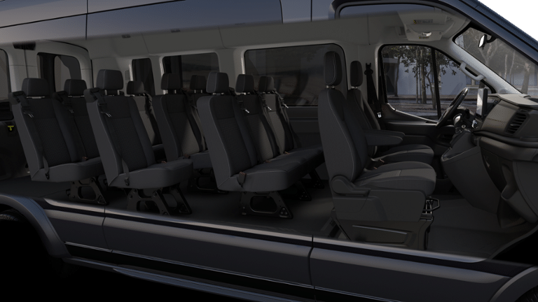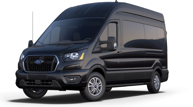 2025 Ford Transit-350 XLT Passenger Van, EcoBoost 3.5L V6 GTDi DOHC 24V Twin Turbocharged, 10-Speed Automatic with Overdrive, RWD, Black Metallic, Dark Palazzo Gray w/Cloth Front Bucket Seats, 3rd row seats: split-bench, 4th-Row Bench Seat, ABS brakes, Air Conditioning, Auto High-beam Headlights, Automatic temperature control, Brake assist, Delay-off headlights, Driver's Seat Mounted Armrest, Electronic Air Temperature Control, Electronic Stability Control, Front Bucket Seats, Front Fog Lamps, Front fog lights, Front Sensing System, Fully automatic headlights, Heated door mirrors, Illuminated entry, Large Center Console, Low tire pressure warning, Navigation system: Connected Navigation, Order Code 302A, Panic alarm, Passenger seat mounted armrest, Passenger vanity mirror, Power steering, Power windows, Radio: AM/FM Stereo w/SYNC 4 & Nav, Rain sensing wipers, Rear air conditioning, Rear reading lights, Rear window defroster, Remote keyless entry, Reverse Sensing System, Side Sensing System, Speed control, Steering wheel mounted audio controls, Tachometer, Telescoping steering wheel, Tilt steering wheel, Traction control, Trip computer, Variably intermittent wipers, Wheels: 16 Steel w/Full Silver Cover.
