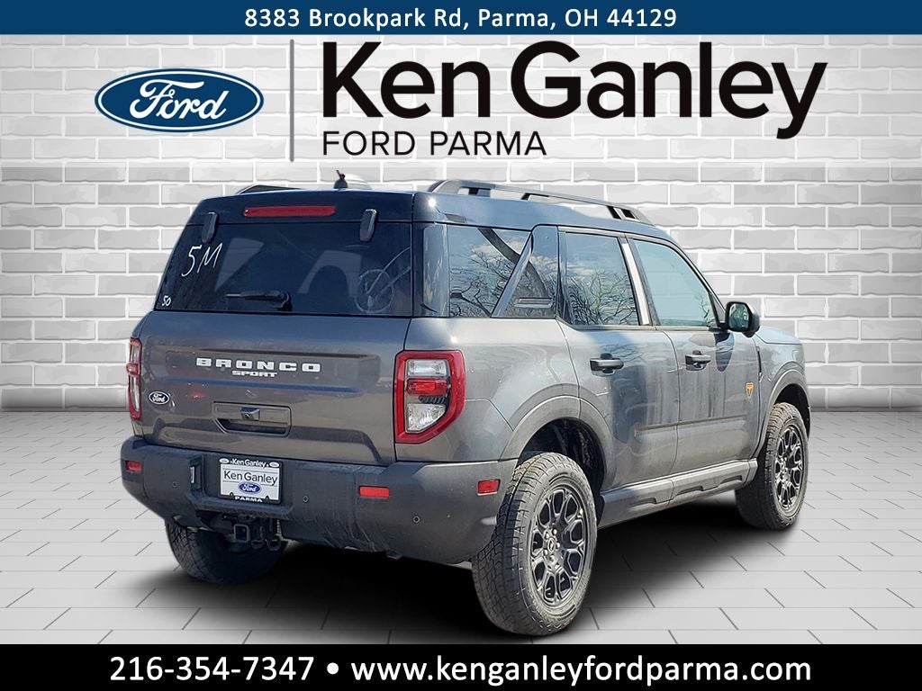 2026 Ford Bronco Sport Badlands Bronco Sport Badlands, 4D Sport Utility, EcoBoost 2.0L I4 GTDi DOHC Turbocharged VCT, 8-Speed Automatic, 4WD, Carbonized Gray Metallic, Dark Space Gray w/Leather-Trimmed Heated Front Sport Contour Bucket Seats, 6 Speakers, Air Conditioning, AM/FM radio: SiriusXM with 360L, AM/FM Stereo, Apple CarPlay/Android Auto, Auto High-beam Headlights, Auto-dimming Rear-View mirror, Automatic temperature control, Brake assist, Compass, Delay-off headlights, Driver door bin, Driver vanity mirror, Electronic Stability Control, Equipment Group 400A Standard Package, Exterior Parking Camera Rear, Ford Connectivity Package (1-Year Included), Front fog lights, Fully automatic headlights, Heated door mirrors, Heated front seats, Heated steering wheel, Illuminated entry, Internet access capable: 5G Modem - Ford Connectivity Package, Leather-Trimmed Heated Front Sport Contour Bucket Seats, Memory seat, Outside temperature display, Overhead console, Panic alarm, Power driver seat, Power passenger seat, Rear window defroster, Rear window wiper, Remote keyless entry, Security system, SiriusXM with 360L, Speed control, Speed-Sensitive Wipers, Steering wheel mounted audio controls, SYNC 4 with Enhanced Voice Recognition, Tachometer, Telescoping steering wheel, Tilt steering wheel, Trip computer, Variably intermittent wipers, Wheels: 17 Matte Black-Painted Aluminum. 21/27 City/Highway MPG