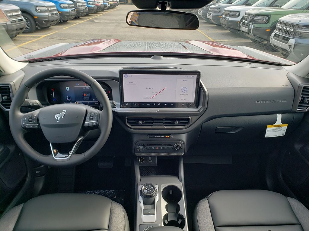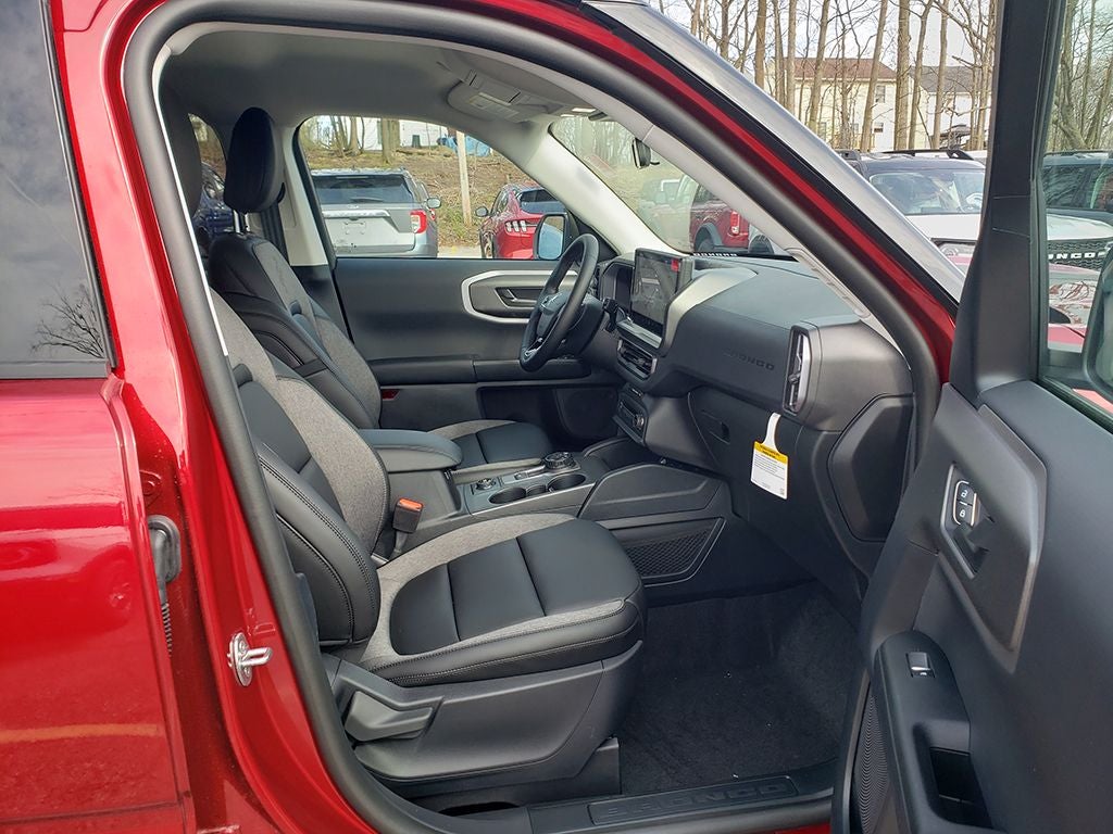 2026 Ford Bronco Sport Big Bend Bronco Sport Big Bend, 4D Sport Utility, 1.5L EcoBoost, 8-Speed Automatic, 4WD, Ruby Red Metallic, Ebony Cloth, Air Conditioning, Alloy wheels, AM/FM Stereo, Apple CarPlay/Android Auto, Auto High-beam Headlights, Automatic temperature control, Black Appearance Package, Brake assist, Carbon Black Grille with Black Painted BRONCO Lettering, Cargo Mat, Cloth with Easy-to-Clean Front Bucket Seats, Convenience Package, Delay-off headlights, Electronic Stability Control, Equipment Group 200A Standard Package, Exterior Parking Camera Rear, Flood Light Adjustable Liftgate, Ford Connectivity Package (1-Year Included), Front and Rear Floor Liners Without Carpet Mats, Front Driver/Passenger Seat Back Map Pockets, Fully automatic headlights, Heated 8-Way Power Driver's Seat, Heated door mirrors, Illuminated entry, LED Fog Lamps, Liftgate with Black BRONCO SPORT Lettering, Painted Shadow Black Roof, Panic alarm, Power door mirrors, Premium Trimmed Front Sport Contour Bucket Seats, Premium Wrapped Steering Wheel, Rear Parking Sensors, Rear window defroster, Rear window wiper, Remote keyless entry, Security system, SiriusXM with 360L (3-Year Plan), Speed control, Speed-Sensitive Wipers, Steering wheel mounted audio controls, SYNC 4 with Enhanced Voice Recognition, Tachometer, Telescoping steering wheel, Tilt steering wheel, Trip computer, Variably intermittent wipers, Wheels: 17 Carbonized Gray Painted Aluminum, Wheels: 17 Matte Black-Painted Aluminum. 25/30 City/Highway MPG