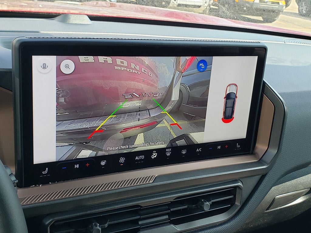 2026 Ford Bronco Sport Outer Banks Bronco Sport Outer Banks, 4D Sport Utility, 1.5L EcoBoost, 8-Speed Automatic, 4WD, Ruby Red Metallic, Ebony/Roast w/Premium Trimmed Heated Front Sport Contour Bucket Seats, AM/FM Stereo, Apple CarPlay/Android Auto, Auto High-beam Headlights, Auto-dimming Rear-View mirror, Automatic temperature control, Brake assist, Compass, Delay-off headlights, Electronic Stability Control, Equipment Group 300A Standard Package, Exterior Parking Camera Rear, Ford Connectivity Package (1-Year Included), Front Driver/Passenger Seat Back Map Pockets, Front dual zone A/C, Front fog lights, Fully automatic headlights, Heated door mirrors, Heated front seats, Heated steering wheel, Illuminated entry, Memory seat, Panic alarm, Power door mirrors, Power driver seat, Power passenger seat, Premium Trimmed Heated Front Sport Contour Bucket Seats, Rear Parking Sensors, Rear window defroster, Rear window wiper, Remote keyless entry, Security system, SiriusXM with 360L (3-Year Plan), Speed control, Speed-Sensitive Wipers, Split folding rear seat, Steering wheel mounted audio controls, SYNC 4 with Enhanced Voice Recognition, Tachometer, Telescoping steering wheel, Tilt steering wheel, Trip computer, Variably intermittent wipers, Wheels: 18 Ebony Black. 25/30 City/Highway MPG