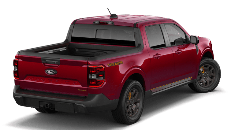 2026 Ford Maverick Tremor Maverick Tremor, 4D Crew Cab, EcoBoost 2.0L I4 GTDi DOHC Turbocharged VCT, 8-Speed Automatic, AWD, Ruby Red, ActiveX Trimmed Heated Front Bucket Seats, Air Conditioning, AM/FM radio: SiriusXM with 360L, Apple CarPlay/Android Auto, Auto High-beam Headlights, Automatic temperature control, Brake assist, Delay-off headlights, Electronic Stability Control, Exterior Parking Camera Rear, Ford Connectivity Package (1-Year Included), Front dual zone A/C, Fully automatic headlights, Heated door mirrors, Heated front seats, Heated steering wheel, Illuminated entry, Internet access capable: 5G Modem - Ford Connectivity Package, Navigation system: Connected Navigation, Panic alarm, Radio: AM/FM Stereo with 8 Speakers, Rear seat center armrest, Rear step bumper, Remote keyless entry, Security system, SiriusXM with 360L, Steering wheel mounted audio controls, SYNC 4 with Enhanced Voice Recognition, Tachometer, Telescoping steering wheel, Tilt steering wheel, Trip computer, Wheels: 17 Machined-Face Tarnished Dark Painted. 21/27 City/Highway MPG