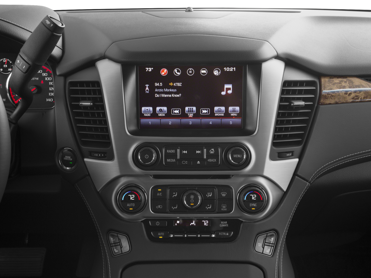 - Audio system, 8" Diagonal Color Touch Screen Navigation with IntelliLink includes new text message alerts and Siri Eyes Free functionality through voice command, AM/FM with USB ports, auxiliary jack, Bluetooth streaming audio for music and most phones, hands-free smartphone integration, voice-activated technology for radio and phone and an articulating screen with hidden storage. Includes 5 USB ports and 1 auxiliary jack (See "gmtotalconnect.com" for phone compatibility information.)