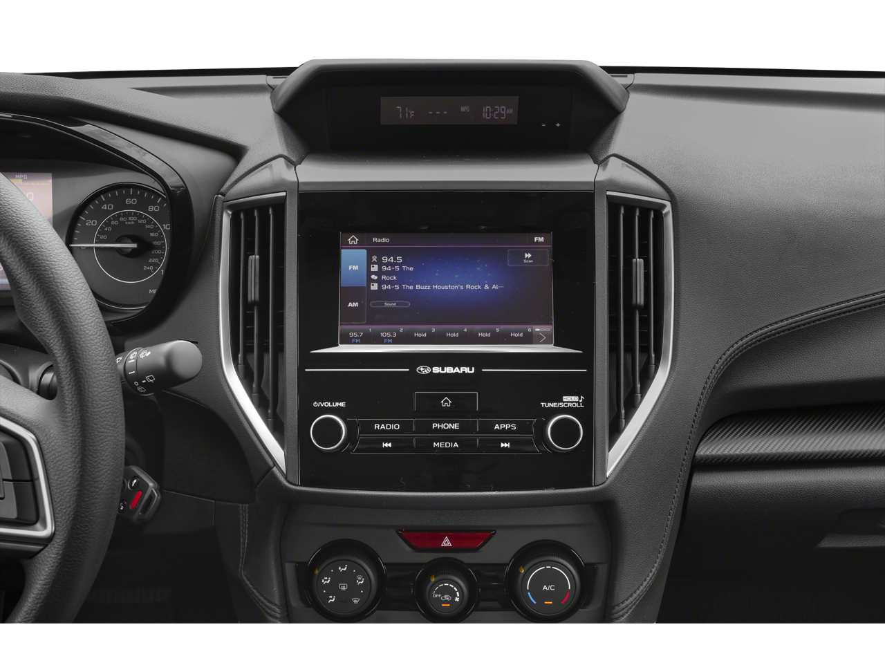 - Radio: Subaru STARLINK 6.5" Multimedia Plus System -inc: AM/FM stereo, HD radio, single disc CD player, MP3/WMA/CRR/RW file capability, multi touch gesture high resolution 6.5 LCD display screen, Bluetooth audio streaming connectivity, Bluetooth hands-free phone connectivity, iPod control capability, rear-vision camera display, SiriusXM All Access radio (subscription required), SiriusXM Travel Link (subscription required), smartphone integration, AHA, Android Auto, CarPlay, Pandora, 6 speakers, 3.5mm auxiliary input jack, dual USB ports, roof mounted antenna and audio/satellite connected services