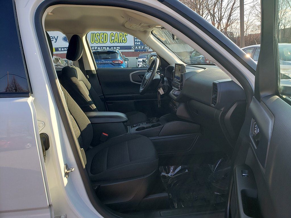 Certified. 2021 Oxford White Ford Bronco Sport LOCAL TRADE, ONE OWNER!!, ONLY 50461 MILES!!, 4D Sport Utility, 1.5L EcoBoost, 8-Speed Automatic, 4WD, 4-Wheel Disc Brakes, 6 Speakers, ABS brakes, Air Conditioning, AM/FM Stereo, Auto High-beam Headlights, Brake assist, Dual front impact airbags, Dual front side impact airbags, Electronic Stability Control, Emergency communication system: SYNC 3 911 Assist, Equipment Group 100A, Exterior Parking Camera Rear, Four wheel independent suspension, Illuminated entry, Knee airbag, Low tire pressure warning, Overhead airbag, Panic alarm, Power door mirrors, Power steering, Power windows, Rear window defroster, Rear window wiper, Remote keyless entry, Security system, Speed control, Speed-sensing steering, Speed-Sensitive Wipers, Steering wheel mounted audio controls, SYNC 3 Communications & Entertainment System, SYNC 3/Apple CarPlay/Android Auto, Telescoping steering wheel, Tilt steering wheel, Traction control, Variably intermittent wipers, Wheels: 17 Sparkle Silver. CARFAX One-Owner. 25/28 City/Highway MPG Odometer is 20068 miles below market average! Thank you for taking the time to look at this good-looking 2021 Ford Bronco Sport. As you do your comparison shopping, you will see Ken Ganley Ford Parma offers some of the best values in the market. We will provide you a Carfax, Comprehensive Vehicle Inspection, and how we arrived at the price. We may not always be the lowest but if you want to know who is; we will show you that too. Call or stop by Ken Ganley Ford located in Parma Ohio to schedule a test drive today.
