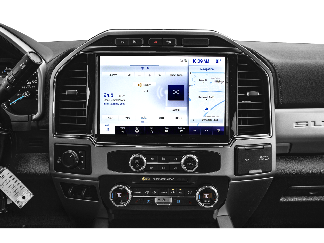 Stepping inside, you'll be surrounded by luxurious comfort and advanced technology. The Lariat Ultimate Package includes power-heated and ventilated front seats with memory settings, a power-telescoping and tilting steering wheel, and a premium B&O sound system. Stay connected with the SYNC 4 infotainment system, SiriusXM satellite radio, and a suite of driver-assist technologies.