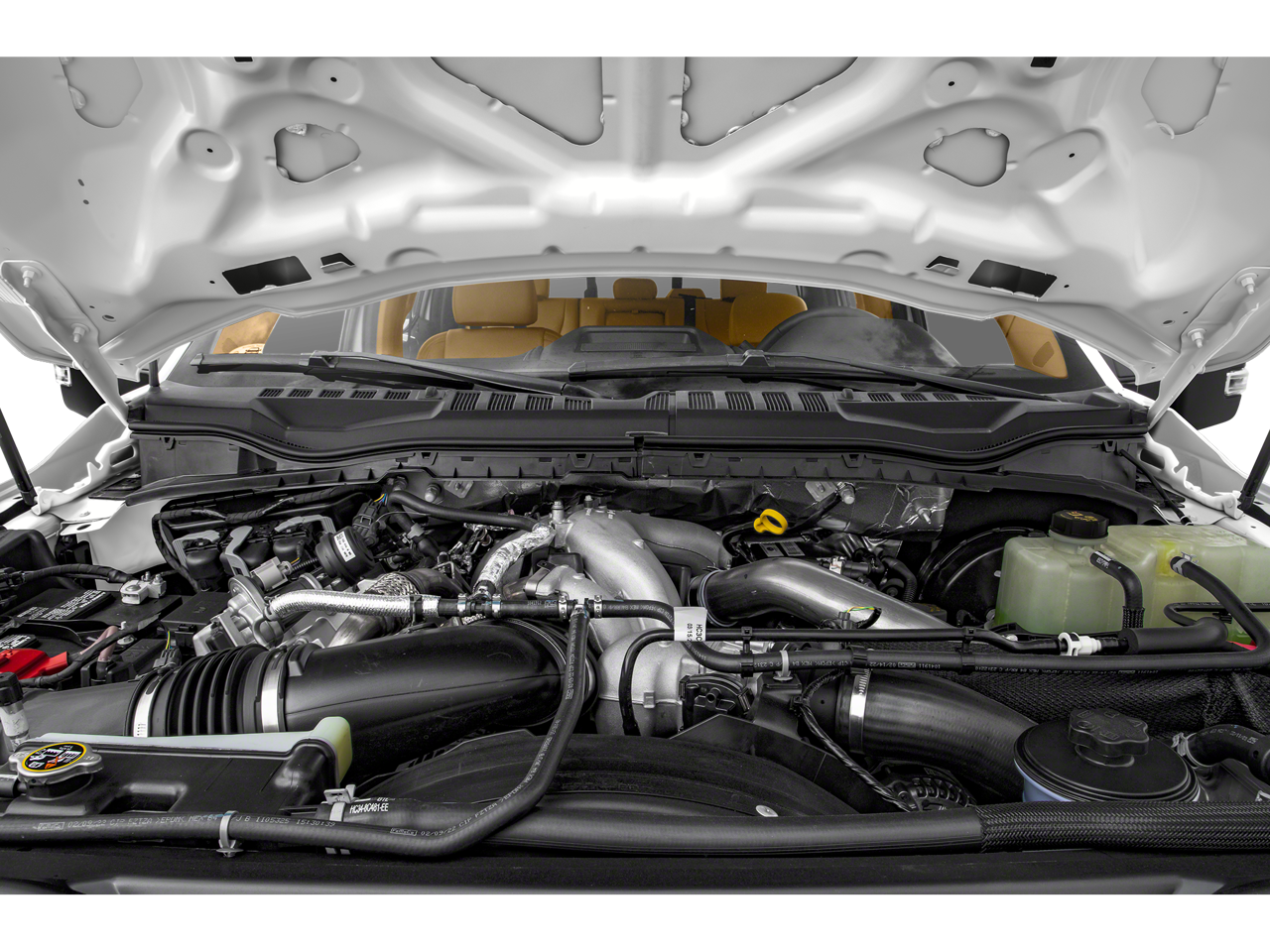 Exterior highlights include the striking Black Appearance Package, 20-inch high-gloss black wheels, and the FX4 Off-Road Package with hill descent control and skid plates. The 5th Wheel/Gooseneck Hitch Prep Package and High Capacity Trailer Tow Package make this F-250SD the ultimate towing companion.