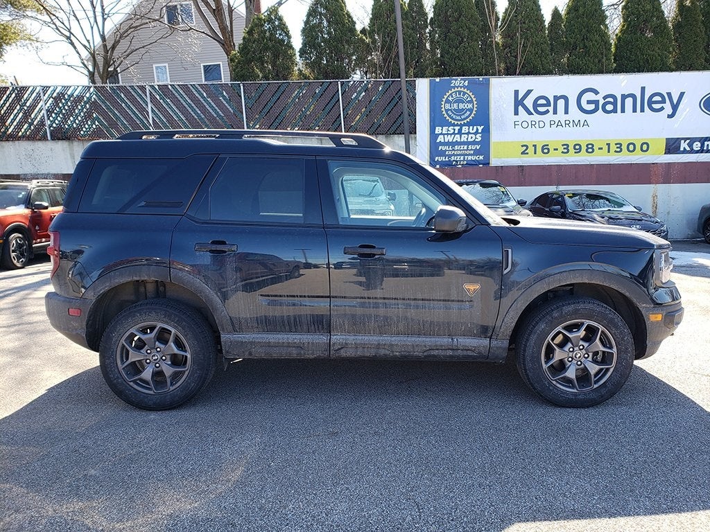 2023 Alto Blue Metallic Tinted Clearcoat Ford Bronco Sport Badlands ACCIDENT FREE CAR FAX HISTORY, LOCAL TRADE, ONE OWNER!!, \, Bronco Sport Badlands, 4D Sport Utility, EcoBoost 2.0L I4 GTDi DOHC Turbocharged VCT, 8-Speed Automatic, 4WD, 4-Wheel Disc Brakes, ABS brakes, AM/FM Stereo, Auto High-beam Headlights, Automatic temperature control, Brake assist, Dual front impact airbags, Dual front side impact airbags, Electronic Stability Control, Emergency communication system: SYNC 3 911 Assist, Equipment Group 400A, Four wheel independent suspension, Front fog lights, Fully automatic headlights, Heated door mirrors, Illuminated entry, Knee airbag, Low tire pressure warning, Overhead airbag, Panic alarm, Power door mirrors, Power driver seat, Power steering, Power windows, Rear window defroster, Rear window wiper, Remote keyless entry, Security system, SiriusXM, Speed control, Speed-sensing steering, Speed-Sensitive Wipers, Steering wheel mounted audio controls, SYNC 3 Communications & Entertainment System, SYNC 3/Apple CarPlay/Android Auto, Telescoping steering wheel, Tilt steering wheel, Traction control, Unique Style Cloth Htd Sport Contour Bucket Seats, Variably intermittent wipers, Wheels: 17 Carbonized Gray-Painted Aluminum. Clean CARFAX. CARFAX One-Owner. 21/26 City/Highway MPG Thank you for taking the time to look at this terrific-looking 2023 Ford Bronco Sport. As you do your comparison shopping, you will see Ken Ganley Ford Parma offers some of the best values in the market. We will provide you a Carfax, Comprehensive Vehicle Inspection, and how we arrived at the price. We may not always be the lowest but if you want to know who is; we will show you that too. Call or stop by Ken Ganley Ford located in Parma Ohio to schedule a test drive today.